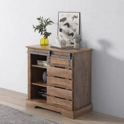 Espresso Side Cabinet Buffet Sideboard with Sliding Barn Door and Interior Shelves by GODEER