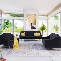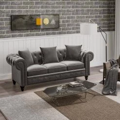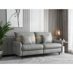 73 in. W Straight Arm Fabric Straight 3-Seat Sofa Couch, Studio 2 Pillows Included in Gray by GODEER