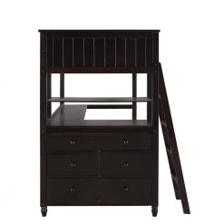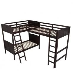 Espresso Twin Size L-Shaped Platform Beds with Drawer Linked with Built in Rectangle Table by GODEER