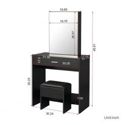 - Size-size of dressing table is 31.5 (length) x 15.75 (width) x 58.67 (height) in.. can be used as a reasonable plan for bedroom. Girls can easily complete installation by themselves.