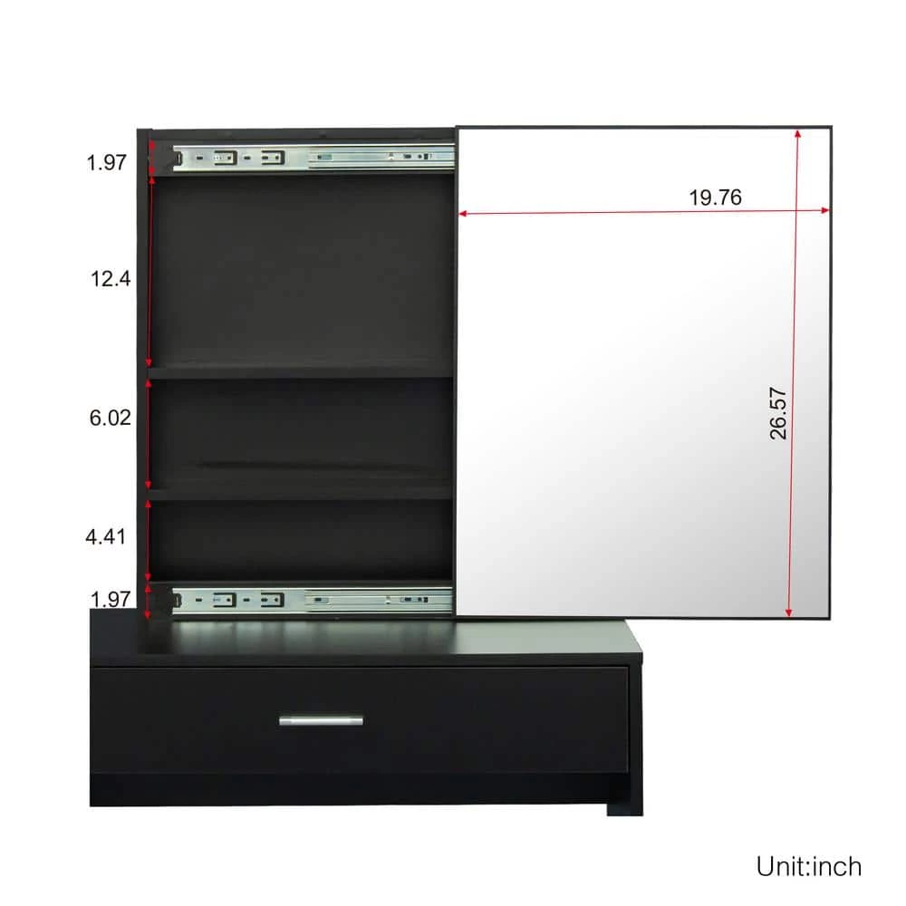 - Enough storage space-are 2 shelves behind mirror, which can store small items such as jewelry and makeup tools