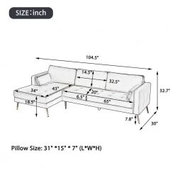 - Modern l-shaped sectional sofa set, comes with a sofa and two free pillows fashionable with high quality velvet upholstery
