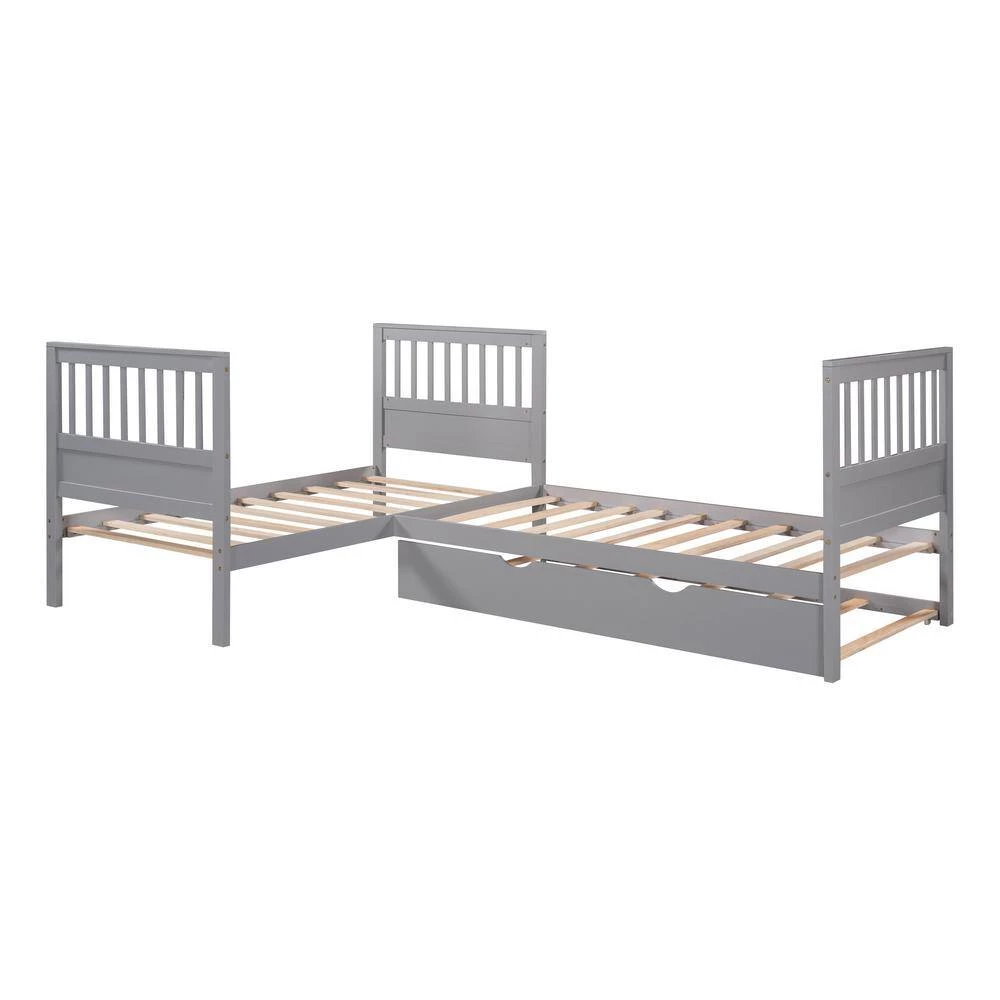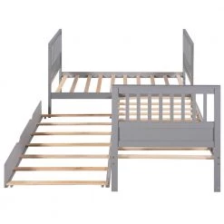 - [Solid Construction] The twin size L-Shaped platform bed is constructed with a sturdy pine wood and MDF frame that features a natural wood grain look for enhanced stability and durability.