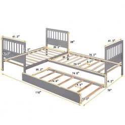 This bed is mainly made of solid pine wood and MDF, durable, and long-lasting. The sturdy pine frame has natural patterns, colors, and structural changes, and each product is unique.The compact design and clean, sleek styling add a decorative touch to your space.This 3-in-1 platform bed is especially suitable for compact rooms where space is tight.When your friends and others come to spend the night, you can use it instead of feel being crowded.