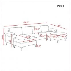 - Overall – Sofa: 128.3″ x 52″ x 33.8 in. H
