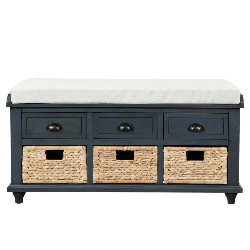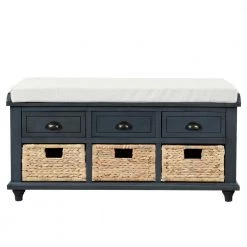 - Chic bench matches fashion with the function, it features 3-drawers and 3-removable wicker baskets, bench add versatile appeal to any space