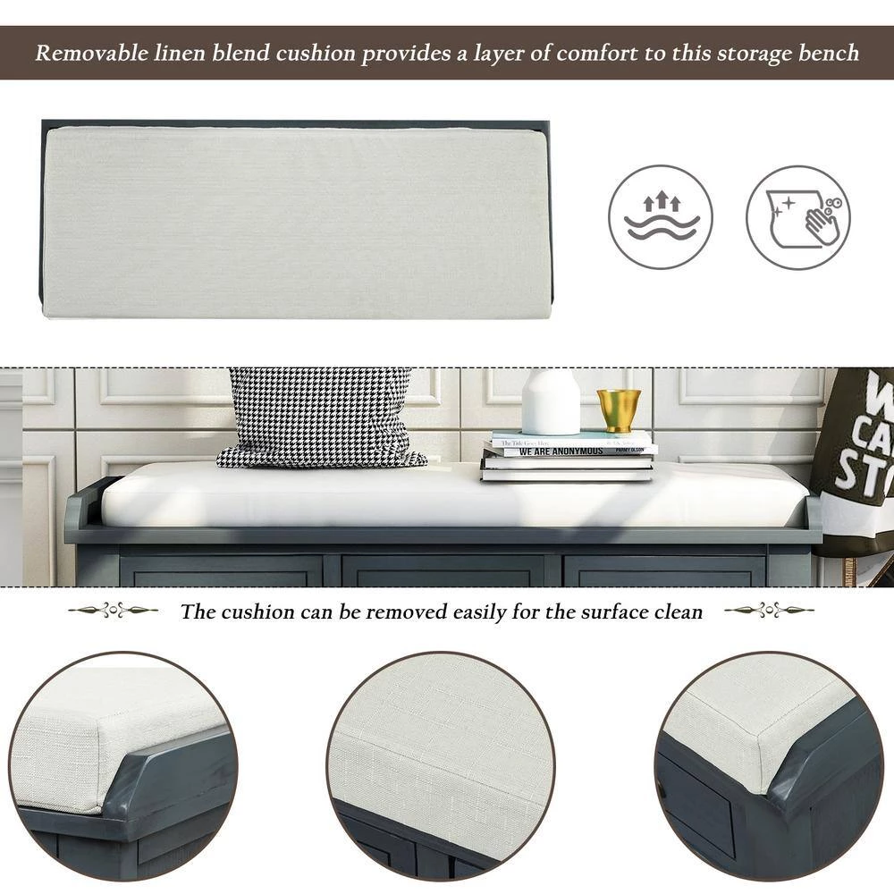 - Removable linen blend cushion provides a layer of comfort to this storage bench, the cushion can be removed easily for the surface clean