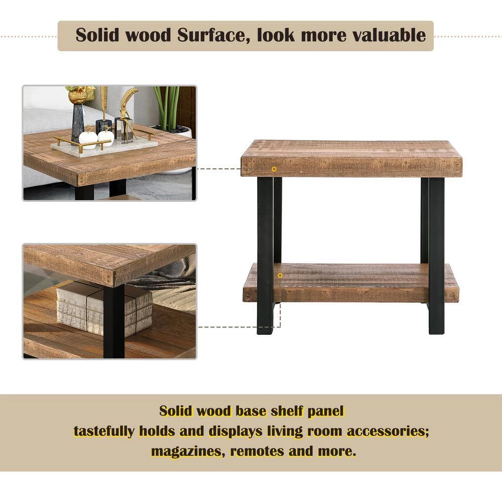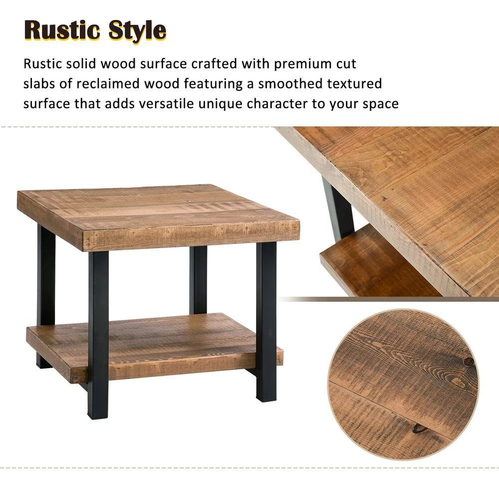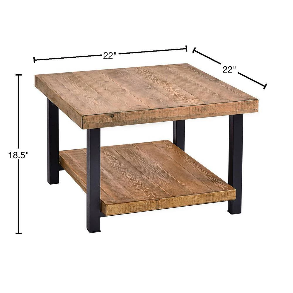 Add a hint of classic charm to your home space with this natural wood brown square coffee table. Useful and elegant, coffee tables are more than just a pretty piece of furniture in front of your couch. Sit back, relax, but don’t put your feet up on this coffee table. This item comes shipped in one carton. Suitable for indoor use only. Some assembly required. Industrial theme. Maximum weight limit is 300 lbs.