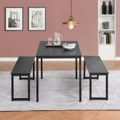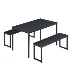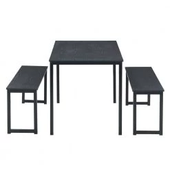 - 3-piece sets design-table set includes 1-table and 2-benches, there are ample spaces beneath table for your legs and benches can be tucked away neatly under table when not in use, great space saver