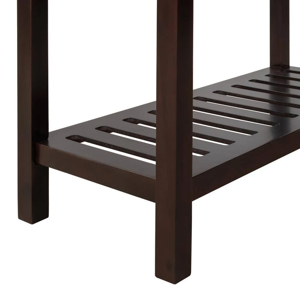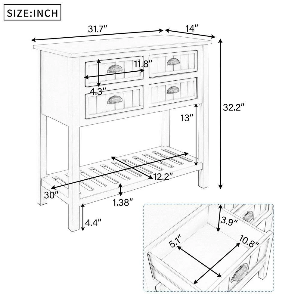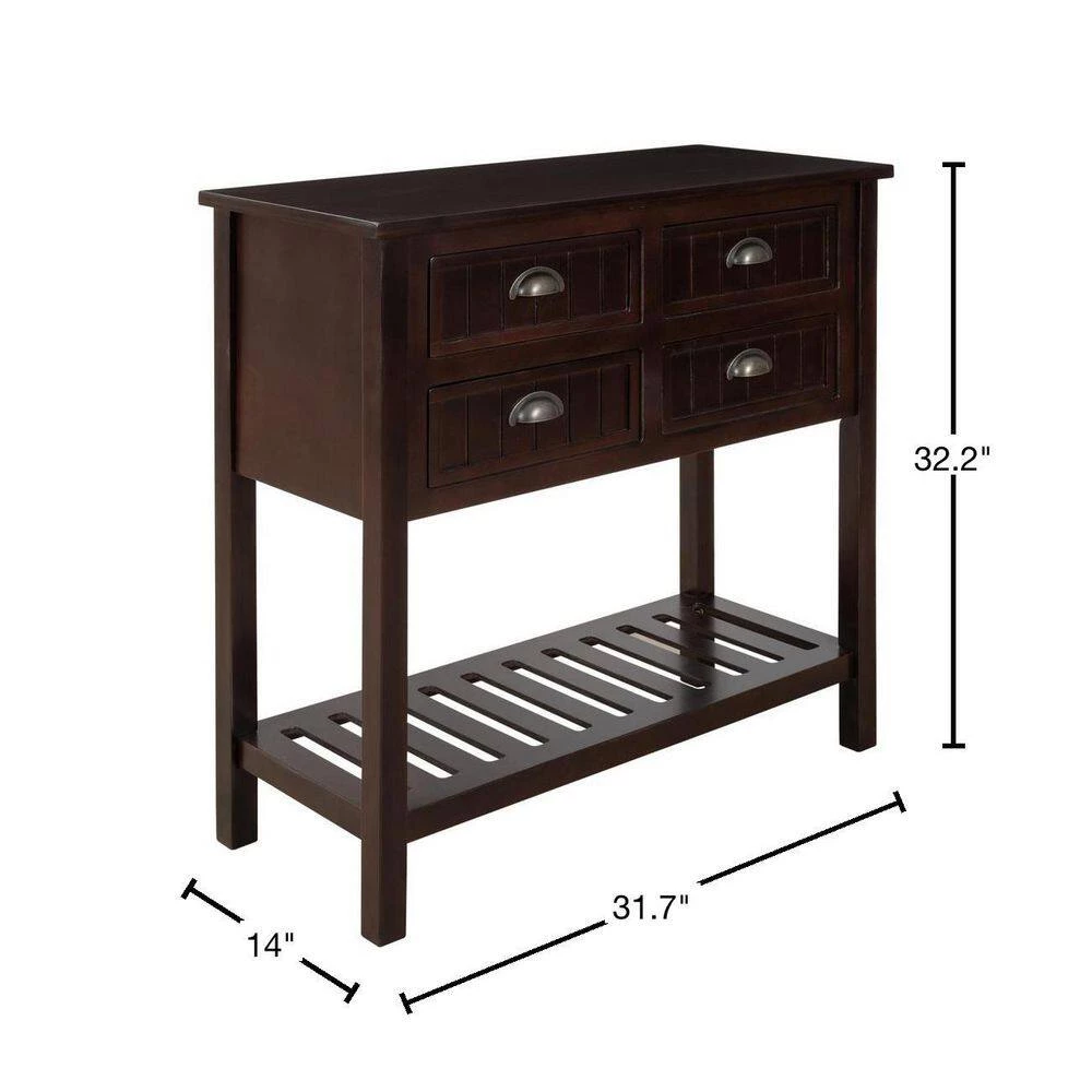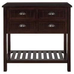 - Features 4-storage drawers, open table top and slatted lower shelf, sofa table provides ample storage space for your personal belongings you can place things like lamps for extra lighting, decors for style, and store keys, coffee cups and magazines in four drawers bottom shelf is ideal for displaying baskets for toys and crafts
