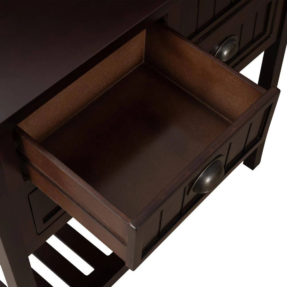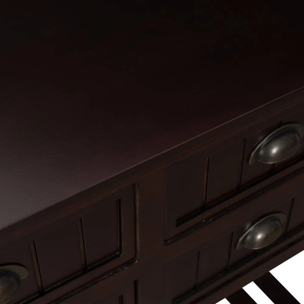- Each drawer boasts a beadboard front, which adds a traditional texture to console table while cup style drawer pull, crafted of metal, further enhances retro and modern feel of console table, creating a transitional and timeless look