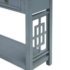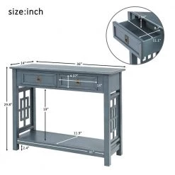 - Console table for storage and displaying decor complete with a spacious bottom shelf and two upper storage drawers with seamless iron knobs that can flip out