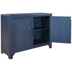 This Accent Storage Cabinet blends unique details and adjustable features for use in a variety of spaces. Complete your home hallway, living room or bedroom with a casual three-door cabinet featuring two-tier storage.Crafted with MDF with veneer for top and Acacia wood for framework, the storage cabinet is solid and durable for long time use. The four interior shelves provide ideal storage for dishes, books, or board games.