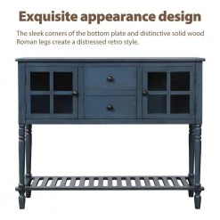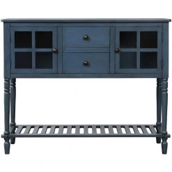 - Featuring spacious open table top and bottom shelf, two glass-front cabinets and two drawers, this sideboard provide you enough storage space for your favourite decorations or books or for storing necessities and tableware.