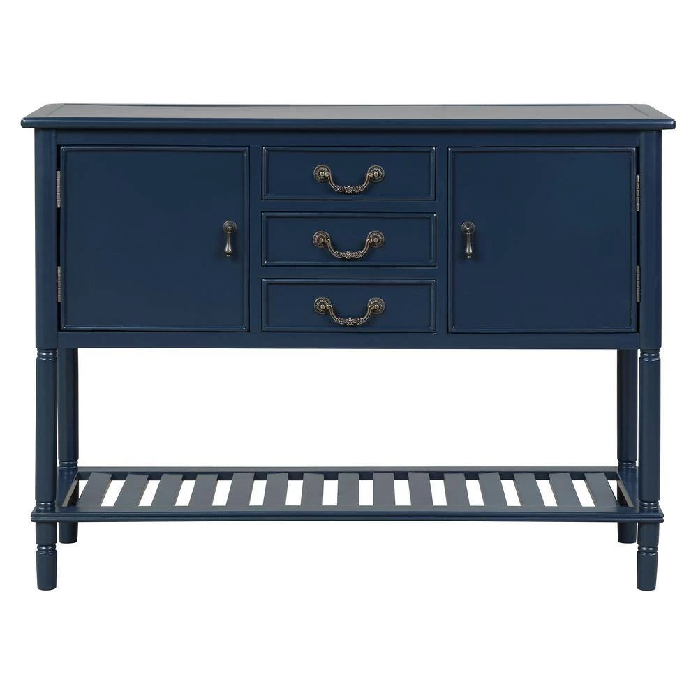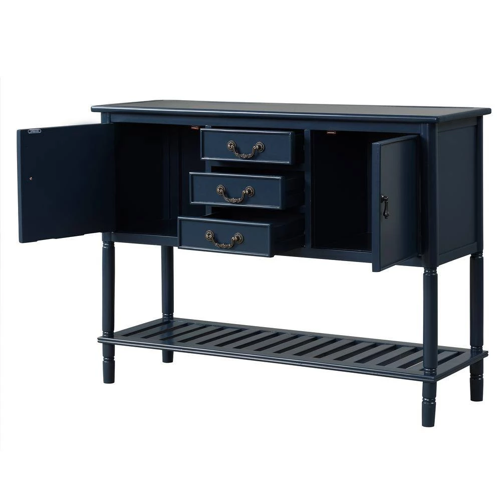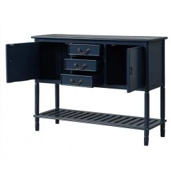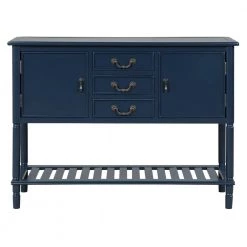 - [MEET YOUR VARIOUS STORAGE NEEDS]Our console table is functional designed, meet diversifying storage demands. There are three drawers and two cabinets to provide sufficient storage space for your files, daily necessities, sundries and keep organized. The bottom shelf can support dictionaries, books, or pot culture, etc. Top board can place your favorite photos, vase, decorations, lamps or other knickknacks.