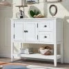 - [AMERICAN STYLE DESIGN]Our console table which is American style, simple and vintage, it will bring retro sentiment to your living area. The tabletop surface has been deliberately aged with wood grain, and the drawers and cabinets got vintage style handles. It can be used as a commodity shelf to support pet stuff, compact umbrellas and daily essentials, or as a vintage book case to hold books and dictionaries, or magazines in the hallway, bedroom and living room.