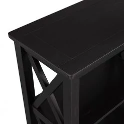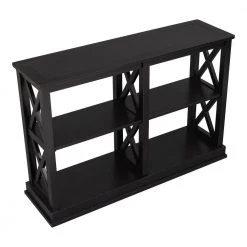 A traditional silhouette gets a contemporary update in this simply-chic console table. Crafted of pine and manufactured wood in a classic painted finish, this console table features chunky moldings, open X-shaped side panels, and four straight square legs. 2-clean-lined shelves are great for displaying everything from rows of your go-to reads to fanning out issues of your favorite magazines, while the smooth tabletop provides a perfect platform for framed photos and collected curios.