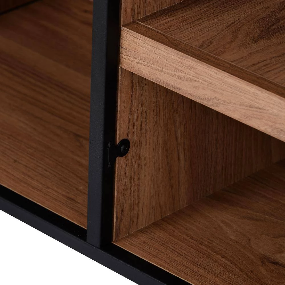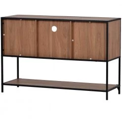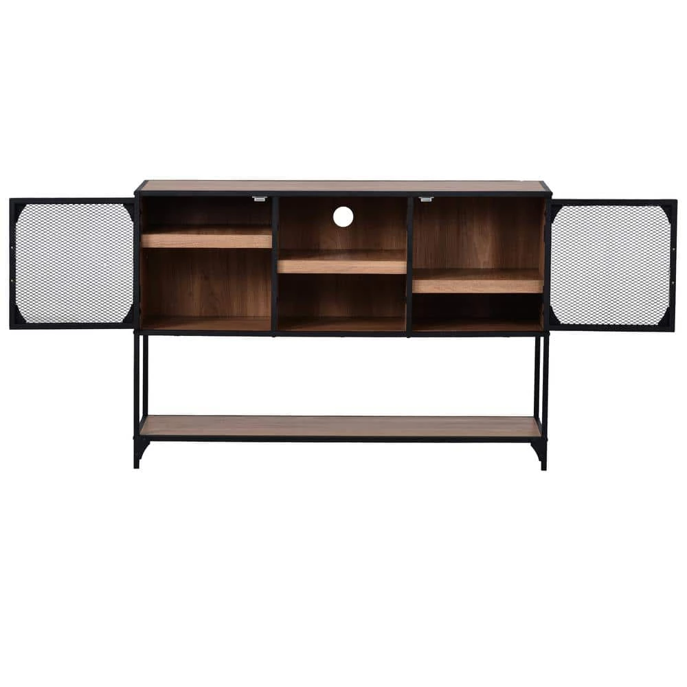 - Multifunctional industrial design: the natural wood grain pairs perfectly with the steel frame in a black powder coating finish, creating a classic industrial feel in your home that is neutral enough to compliment a variety of unique interior styles by blending in seamlessly, the cable management on the back allows it to be used not only as a console table but also as a tv stand, you can use the middle shelf to hold your electronics and media accessories