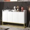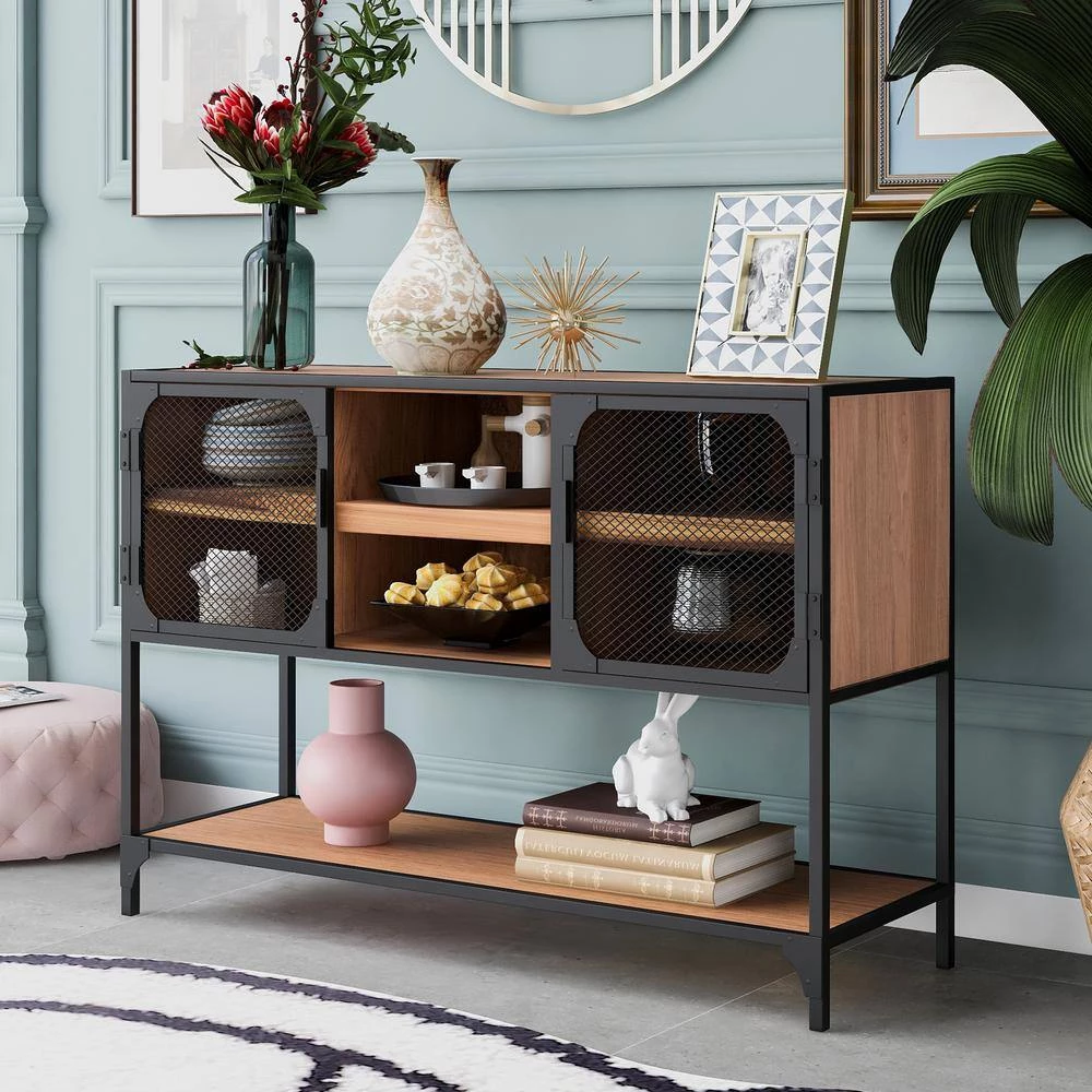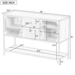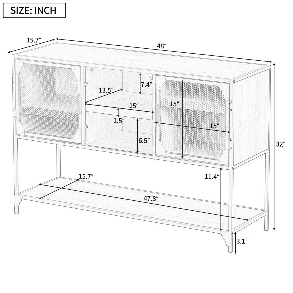 - Dimension and long-lasting material: overall size: 48 in. L x 15.75 in. W x 32 in. H. the sideboard craft from heavy duty metal legs and high quality particle board, thanks to the high quality material, this buffet works quite firmly and not wobbles at all once assembled, the tabletop and bottom shelf can hold up to 67 lbs., and each shelf can hold up to 11 lbs.