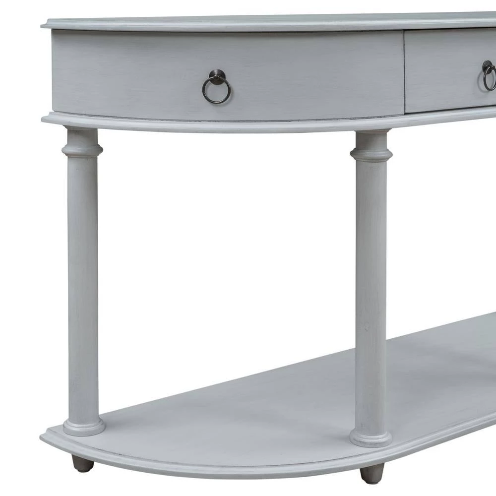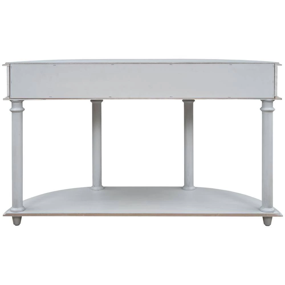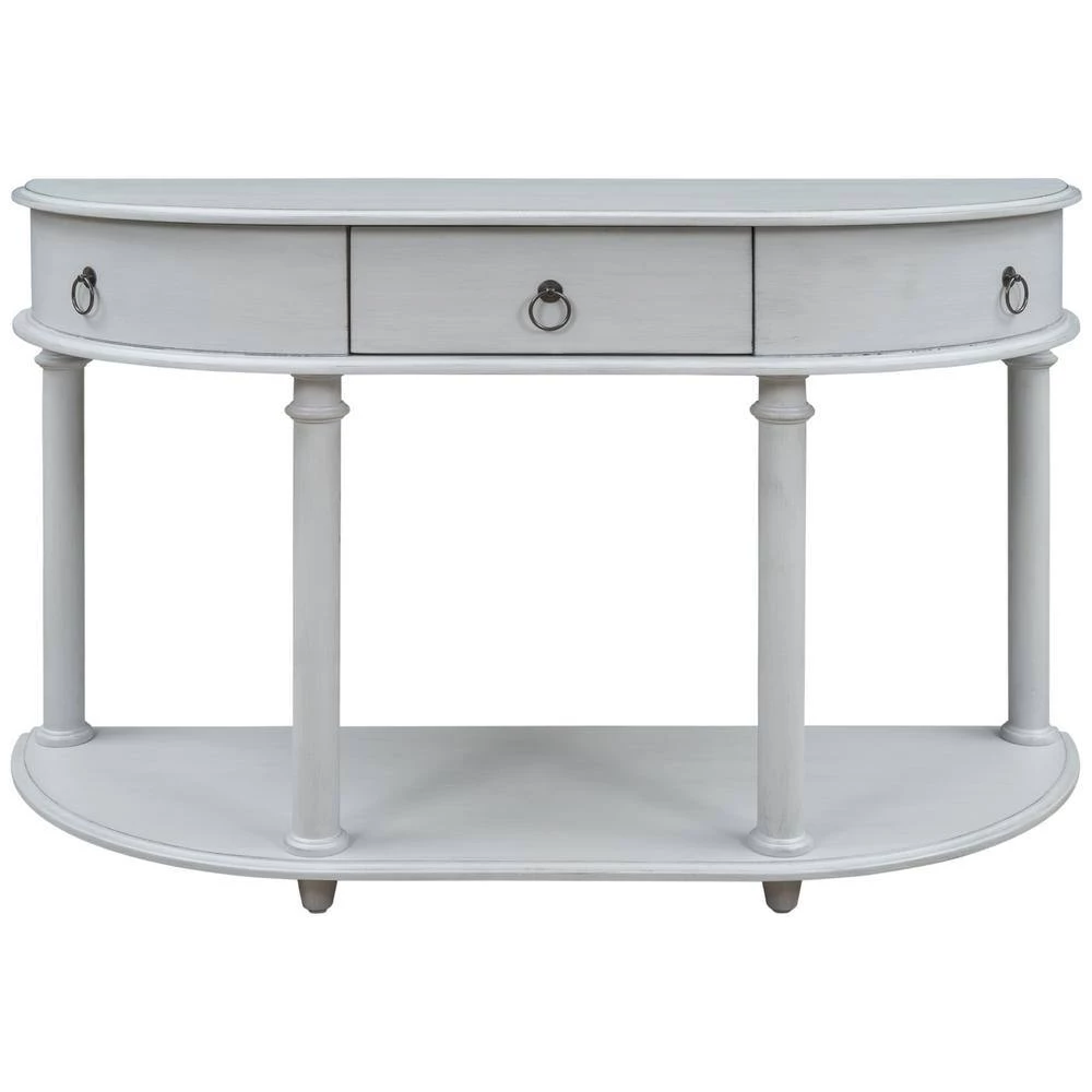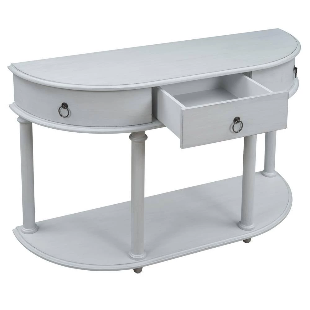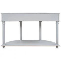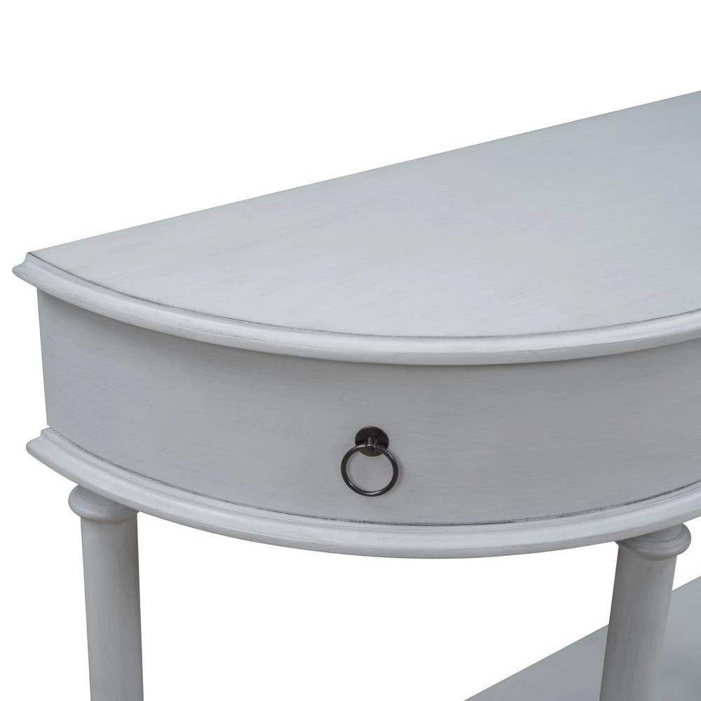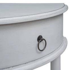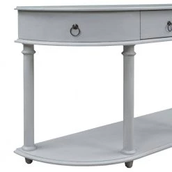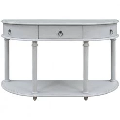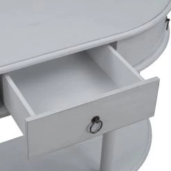 - Symmetric structure: There is a separate drawer under the desktop, which can be used to store daily necessities like keys or books. pull-ring handles consistent with the middle drawer are also designed on both sides, showing a symmetrical structure, which makes it look more harmonious and has a sense of design. Semi-circular outline, full of design sense, and four legs make the structure more stable. Decorations such as photos and vases can be placed on the desktop, and storage baskets, potted plants, decorations and some lamps can be placed on the bottom plate