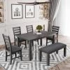 The rectangular table is made of high quality MDF and acacia veneer. Stable and sturdy thanks to rubber wood legs. Rich texture on the polished edges give this set a striking appearance. Brown or gray textured finish adds a unique and elegant allure to your space while the decorated wooden strips at the edges of both chairs and tabletop help to enhance the solid, traditional feel.