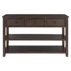 - 3-Drawers and 2 layers shelves there are 3-Drawers set under the tabletop to offer large room for storing daily necessities or files, and so on, you can keep daily sundries out of your sight to ensure your home clean and tidy, round retro handles with fine craftsmanship shows a delicate and elegant life attitude, as a practical console table, the open style shelf is a vital element, the setting of 2 open shelves meet the requirements of placing storage basket, books, pot culture, etc.