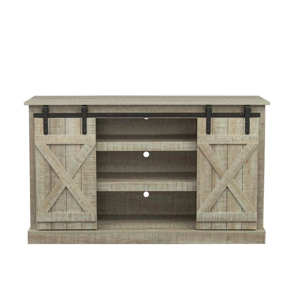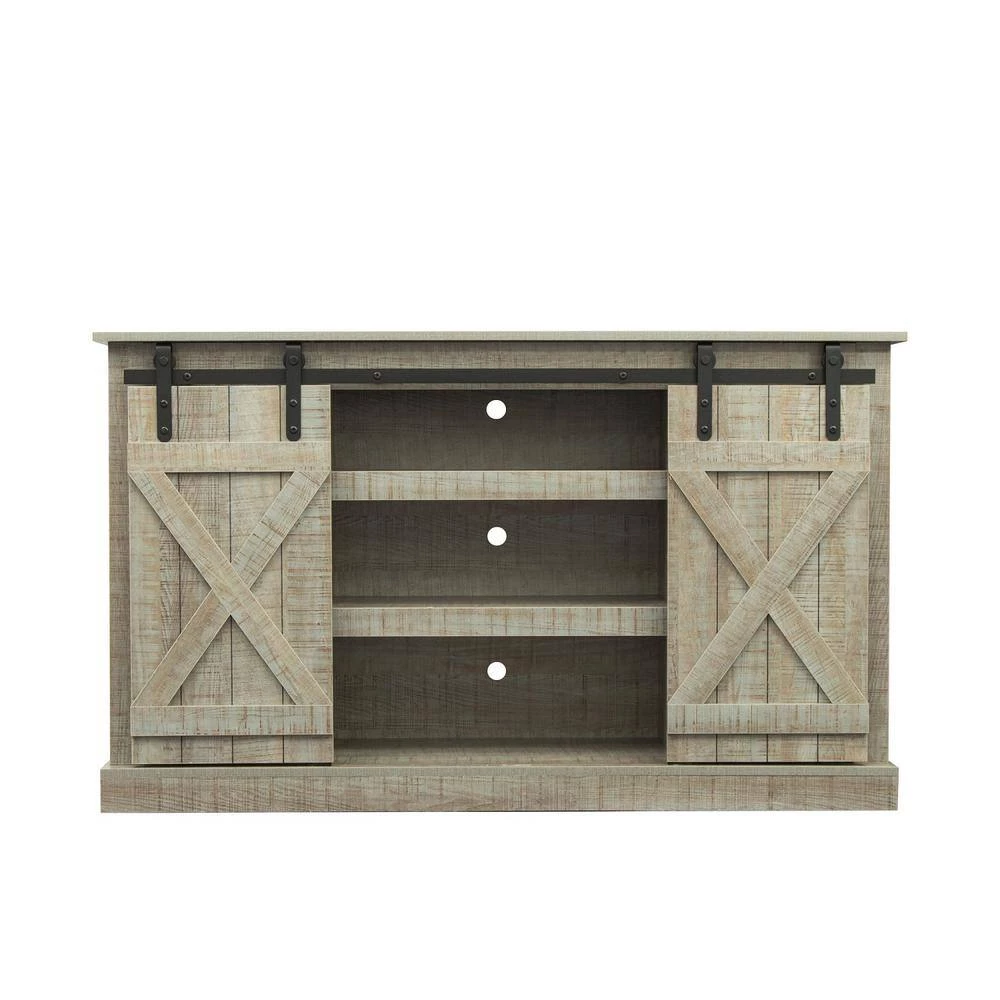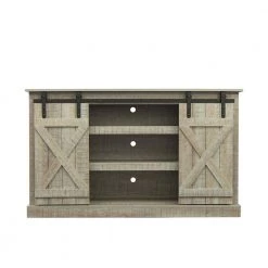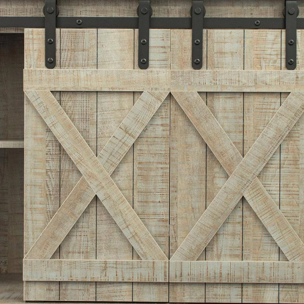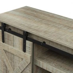 - Great wood textured surface table, made from high-grade certified MDF for long-lasting construction featuring barn door inspired cabinet fronts for a country feel