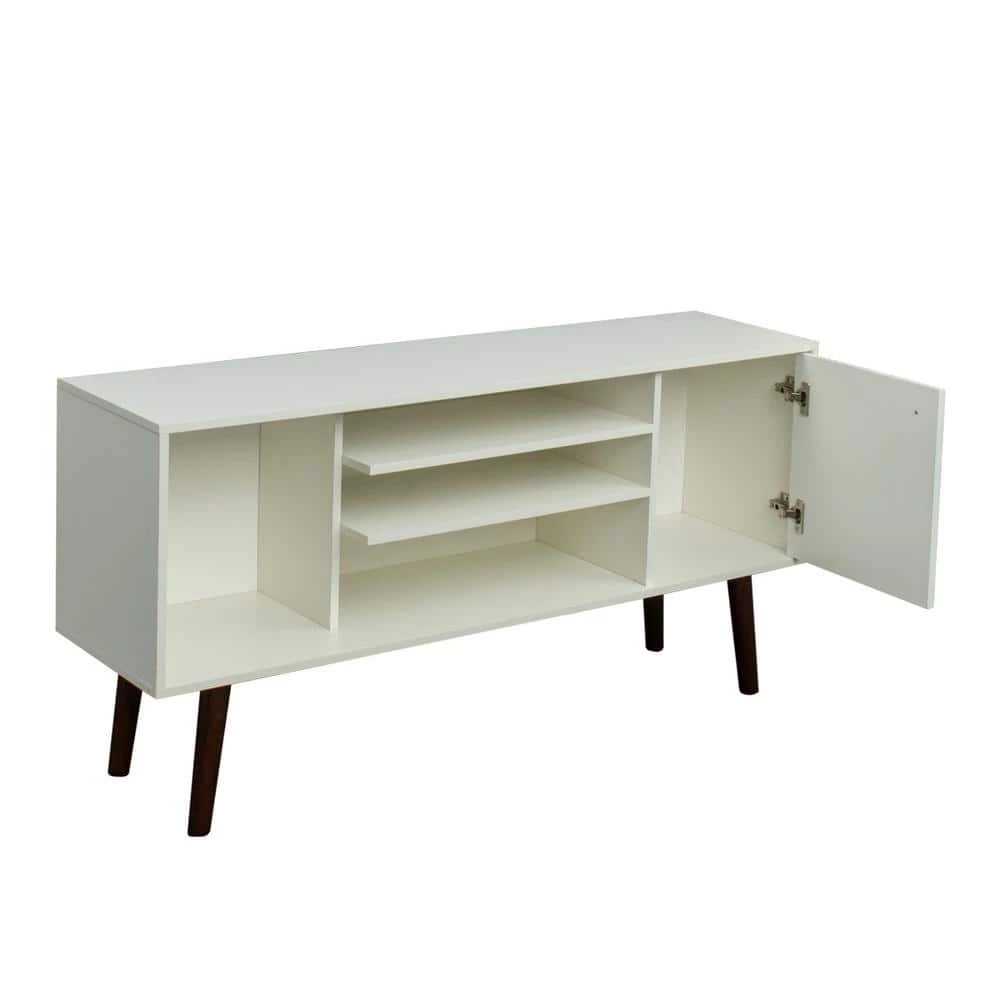 - Durableandsturdy frame: tv stand with rich textured veneer not only gives an attractive modern look but also features superior stability and its resistance against wear and tearfour solid wood legs are used, which can make cabinet stronger
