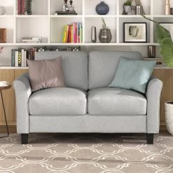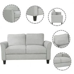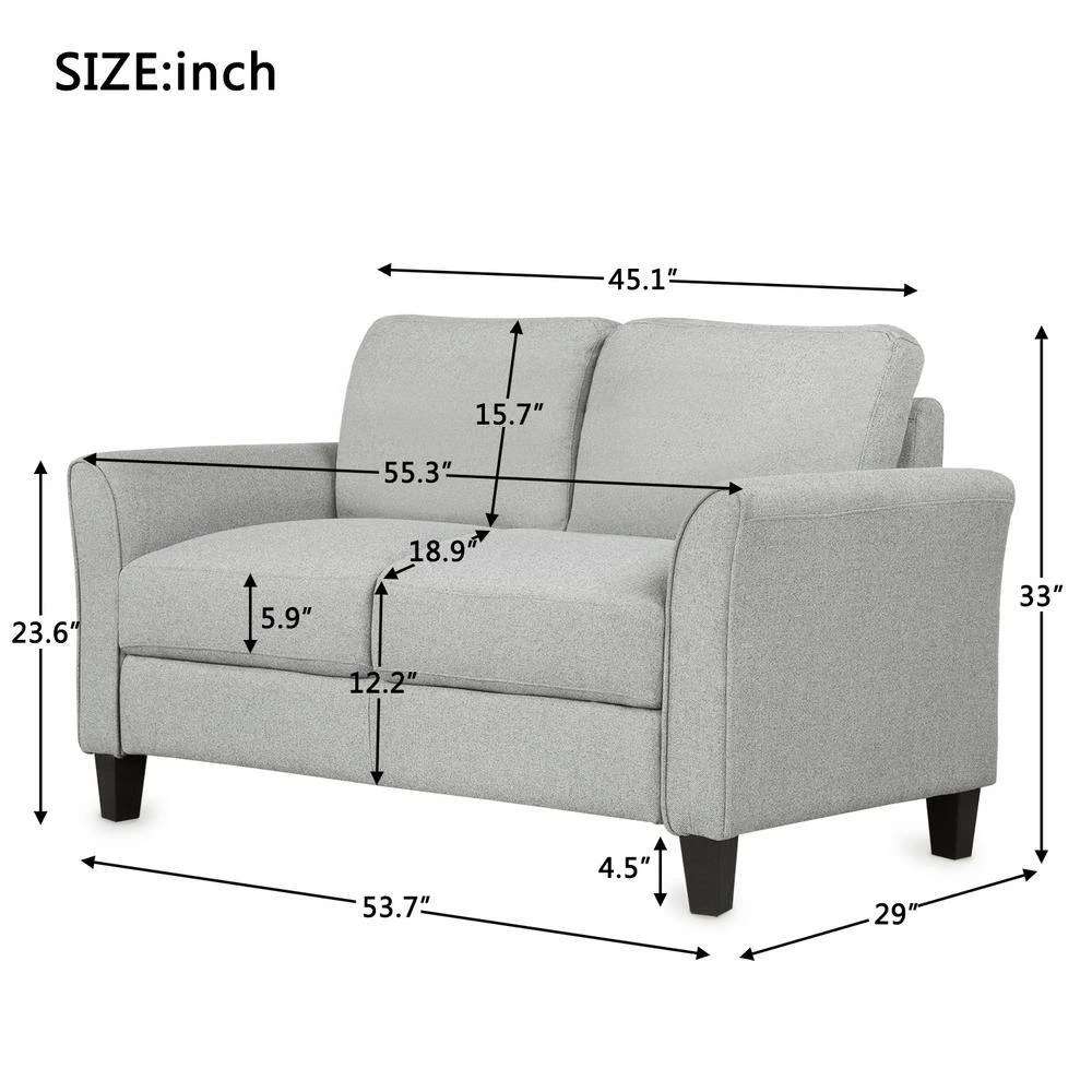 - Sofa set includes: 1 x loveseat chair upholstered with in soft linen fabric and cushions padded with thick foam for an elegant appearance and extra comfort Constructed with sturdy hardwood frame and inner cushion spring reinforcement for stability and durability .Easily assembles with your family in under 20 minutes