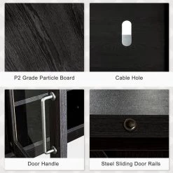 - Particle boards of 2 thickness make up this tv stand, 1 is 18 mm, and another is 12 mm, the selections of 18 mm particle board are tabletop, bottom shelf, foot column, adjustable shelf, and the other selections are of 12 mm particle board, both of the thicknesses are particle board with stickers on both sides, and it’s suitable for this sort of furniture because it looks nice and has stability and durability