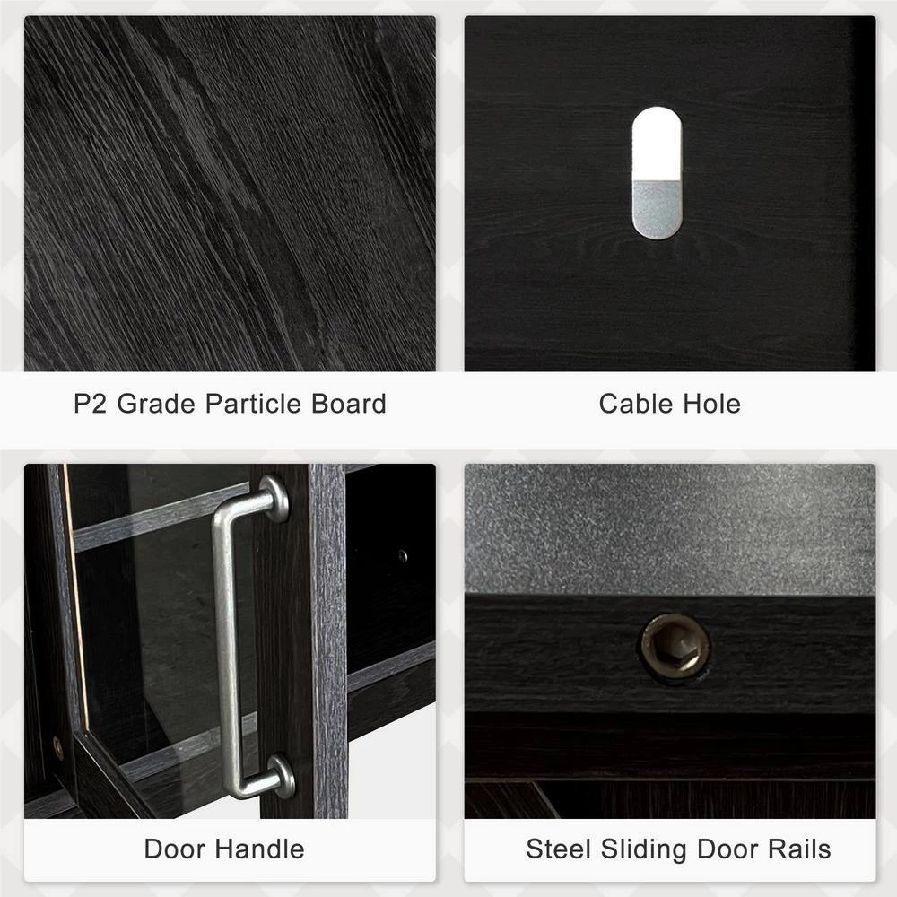 This TV cabinet is a great choice for metallic and retro feel, with 4 round rivets set on either side of the roof and the 4 corners of the door panel, each with a huge rectangular metal door handle. Not only can bring the convenience while using, but also play a good role in decorating, highlighting your personality. Our carefully selected sticker patterns have a deliberate scratch effect, with X-shaped decorative wood strips on the side to add flavor to your home.