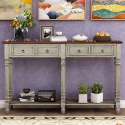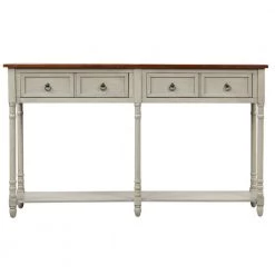 - NATURAL WEATHERWORN LOOK: Rectangular console table with clean lines, elegantly tapered table legs, round deco knobs with Bronze exude a high-end, elegant feel.