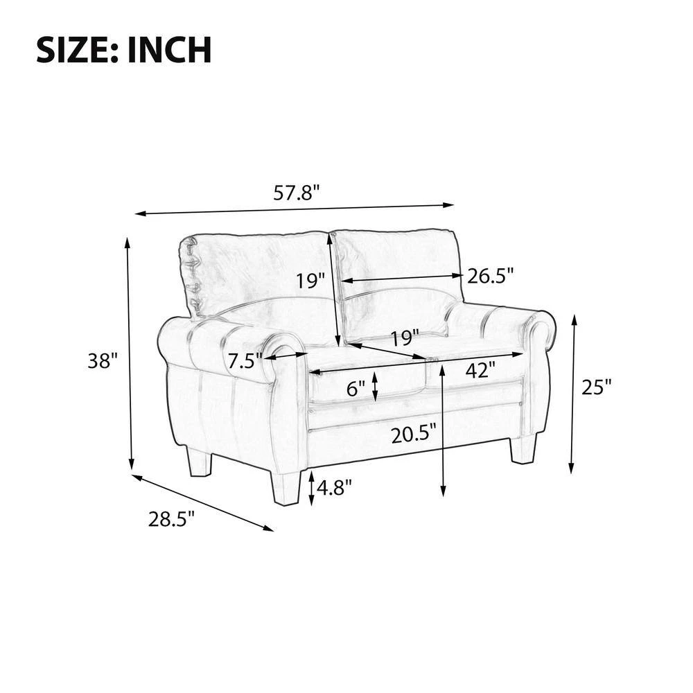 This loveseat is perfect for filling living rooms and seating guests with ample space. While the rolled arm round out the design with a Hint of Mid Century Style, adding an air of class to the piece and your room.Fine fabric material, seat cushions filled with high resilience foam provide comfortable support for your body when seated, and easily regain their shape when you rise.