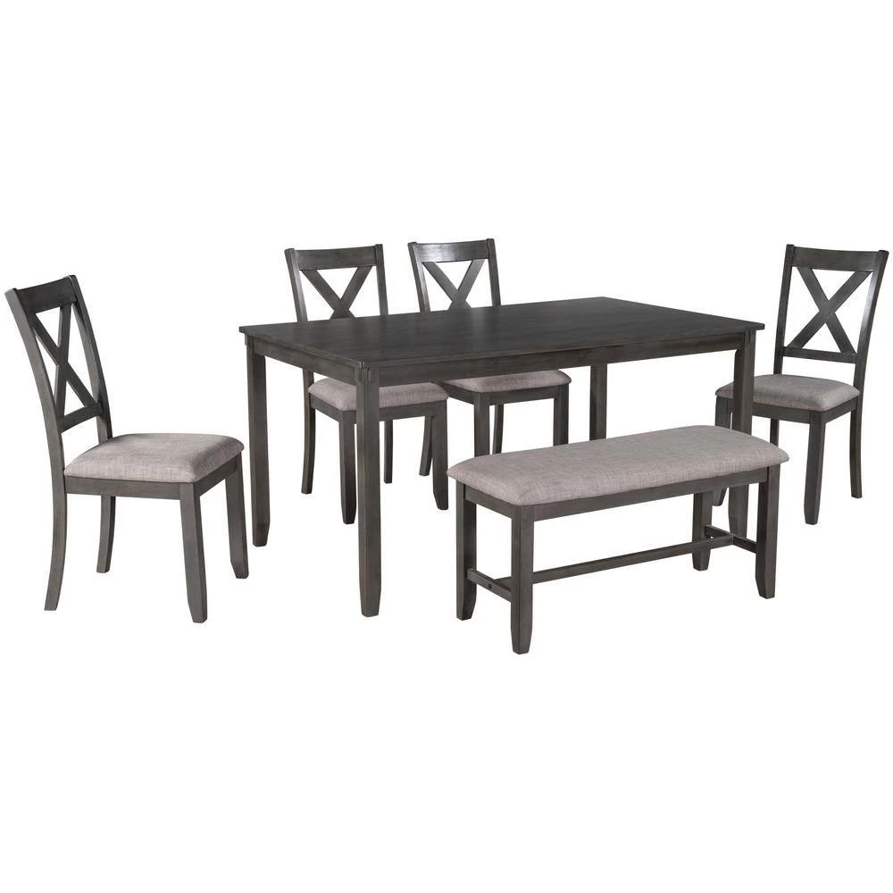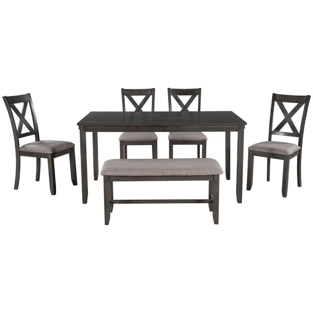 This is a 6-piece set table set. This rectangular dining table set offers 4-wooden dining chairs, 1-dining table and 1-exquisite dining chair, which can fully accommodate your family. Our wooden dining table set brings a touch of elegance to your dining area.