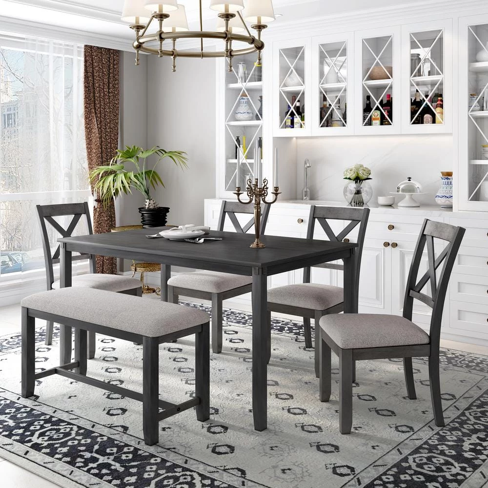 - Ideal for family use: ideal for dinette, kitchen, and dining areas, multi-functional dining set seats up to 6-people, perfect for families to enjoy meal times together, smooth, waterproof table top can easily be cleaned with a simple wipe down, for hassle-free maintenance