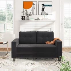 - Space Saving: Perfect for small apartment, upstairs loft and more. This loveseat’s inviting appearance fits well in any setting.