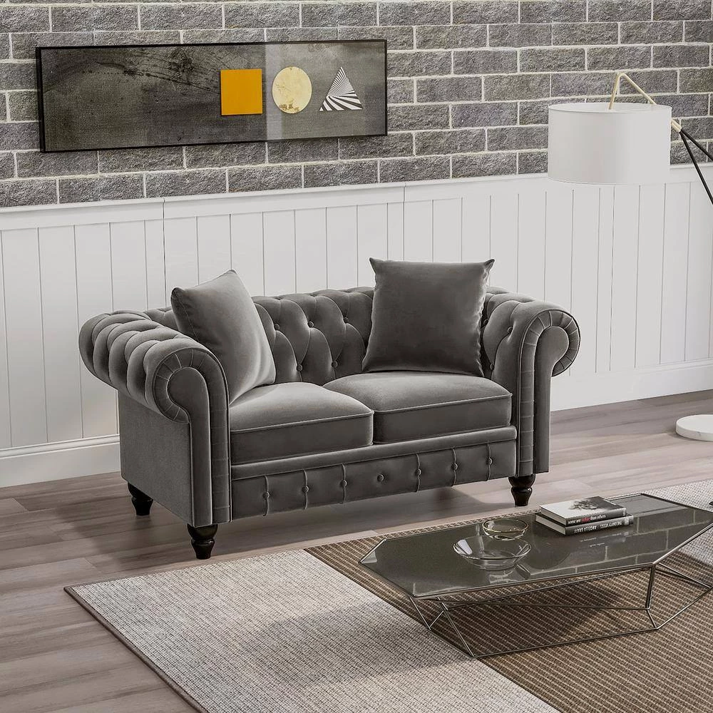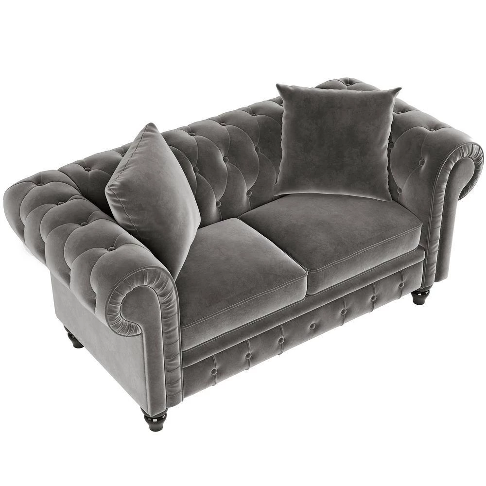 With comfortable foam, down-filled cushions that are supported by a sinuous spring construction and a button-tufted scrolled back and arms, this chesterfield sofa set is just right for anyone looking to keep guests over long after game night ends.In a classic style, sofa with armrests at the same height as the backrest. The unique color is eye-catching and perfectly decorates your home.Deep tufted accentuates the breathable fabric. Back and armrest will work well in either a modern or a traditional environment and pairs perfectly. Great for your living room, bedroom, or office.