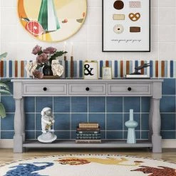 - Whether you need a light source, a convenient place to display nick-knacks, or you require extra storage with a small footprint, this console table is the perfect match.