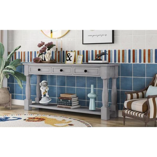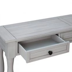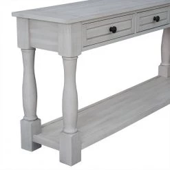 - Designed in an extra-long, extra-thick Mediterranean style, this console adds a subtle elegance to your space and provides space to accent and display your belongings.