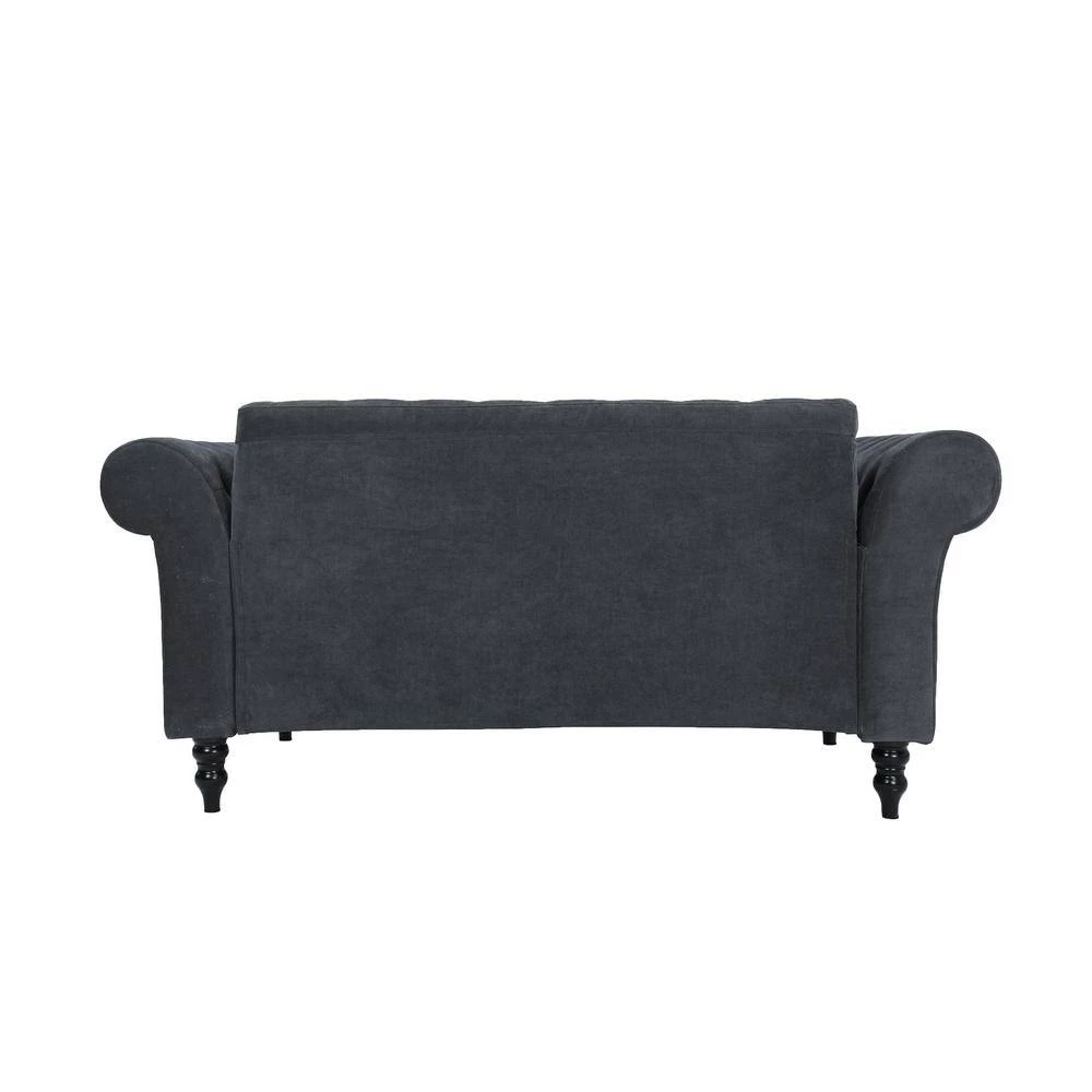 This timeless loveeat sofa radiates new vitality in this classic upgrade. With traditional roll arms, complex tufted and pleated interiors and elegant flanging legs, this deep seat option will immediately become the core of the living room or other indoor seating areas. Enjoy this lovely sofa in the years to come.
