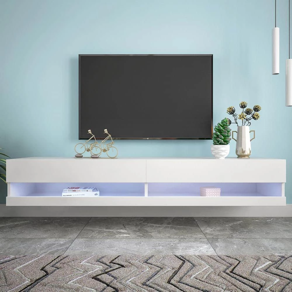 The combination of fashionable design and this floating TV stand brings you a fashionable atmosphere, which can easily match any style of room or furniture. Coupled with controllable color LED, it will add a trace of elegance and vitality to your bedroom, living room, media room and office. This wall mounted TV station has large storage space and is very suitable for storing TV components, game accessories, books and decorations. You can also put the decorations in the living room on the TV cabinet.