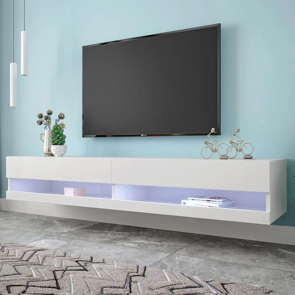- Floating TV stands good for up to 80 in. TV, floating entertainment center walls, wall mount TV stands, wall mounted media consoles and hanging TV consoles