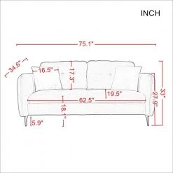 - Overall size -Sofa: 75.1″ x34.6″x 33″H