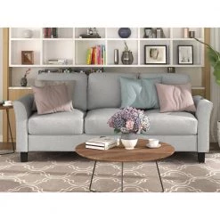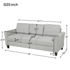 - Sofa set includes: 1 x 3-seat set Upholstered with in soft linen fabric and cushions padded with thick foam for an elegant appearance and extra comfort Constructed with sturdy hardwood frame and inner cushion spring reinforcement for stability and durability Easily assembles with your family in under 20 minutes