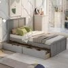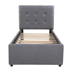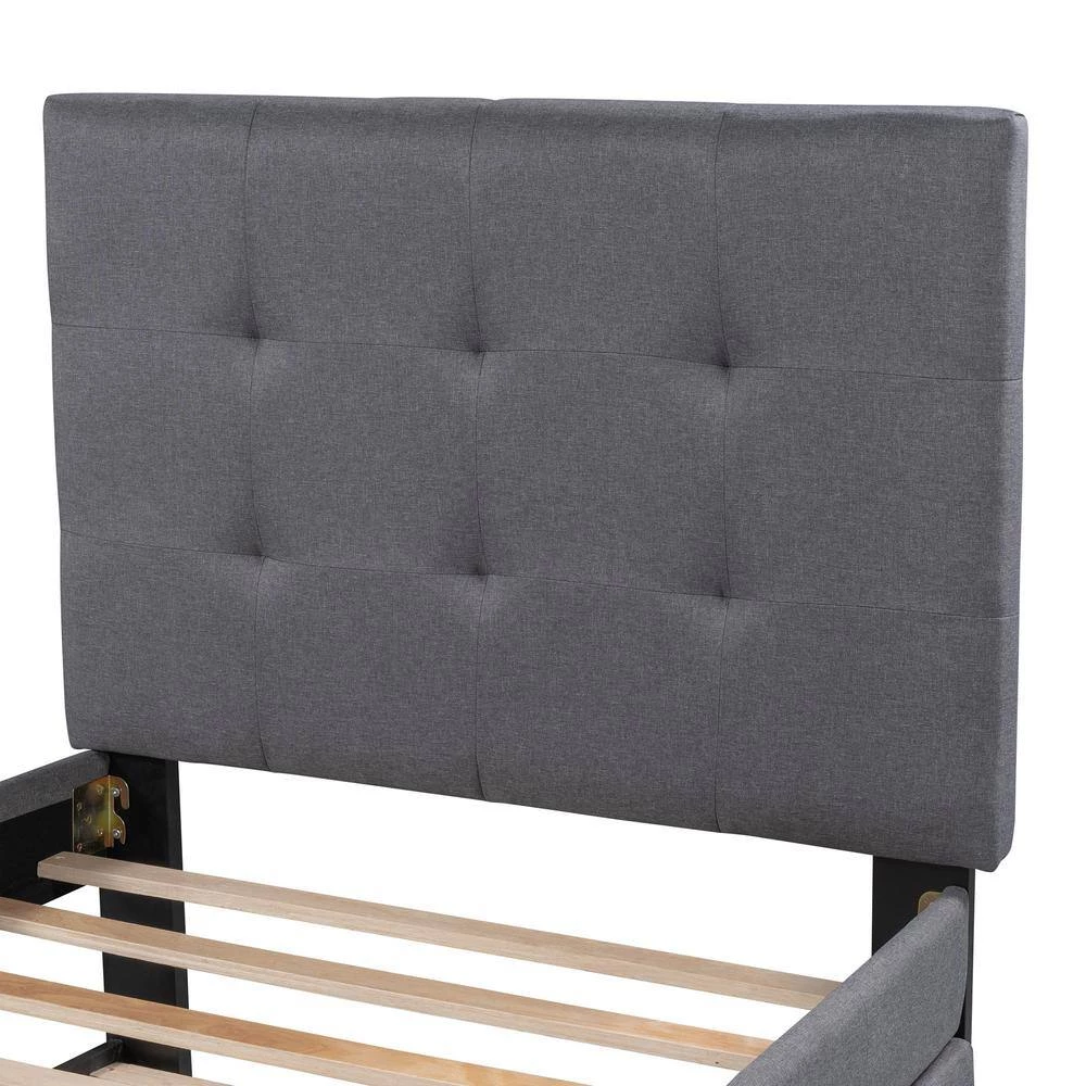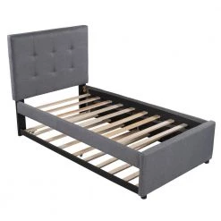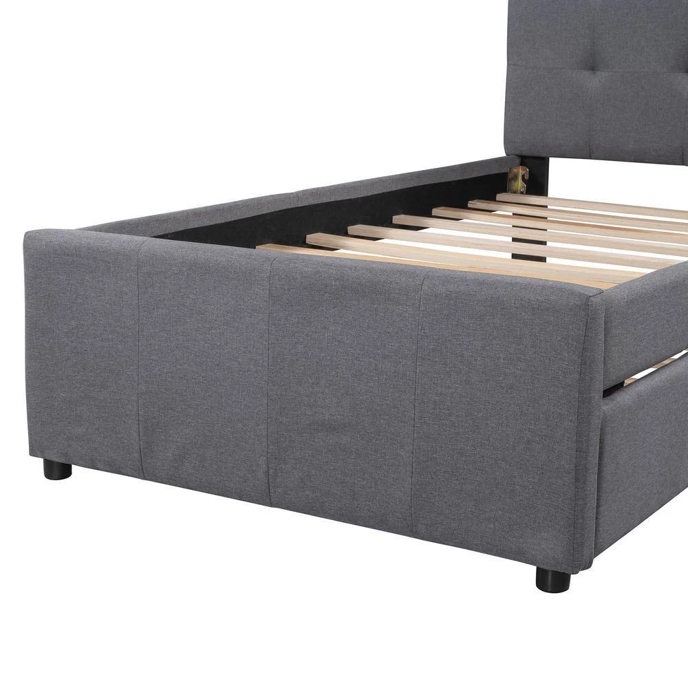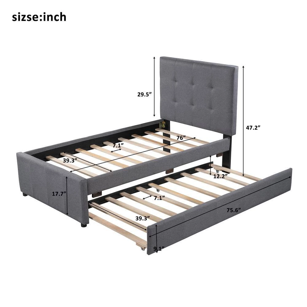 - Platform bed includes a trundle, which has sturdy slats to support