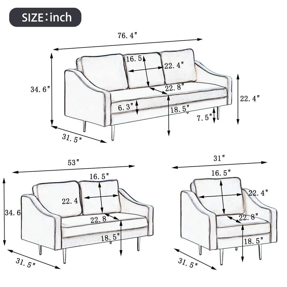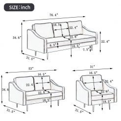 Three seater sofa, loveseat or armchair, which perfect for filling living rooms and seating guests with ample space. Fine velvet material, seat cushions filled with high resilience foam and provide comfortable support for your body when seated, and easily regain their shape when you rise.Wood frame and durable legs make the sofa sets for living room can support largest weight of 250lbs/seat, added stability and durability, can be used for a long time.