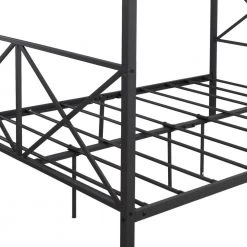 - Bed frame adopt a sturdy construction and metal slats for a comfortable, good night’s sleep