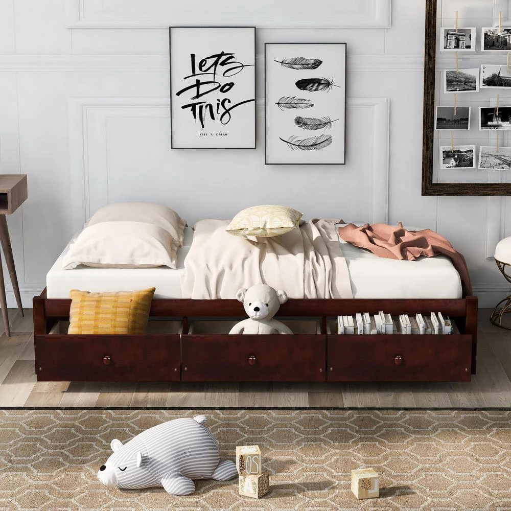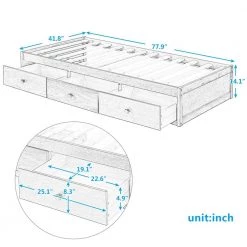 - Twin Bed Frame with Drawers, Constructed from high quality solid pinewood , Standard twin size bed fits standard twin size mattress (Mattress not included)