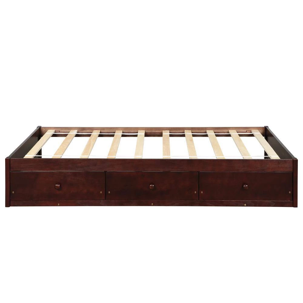 This platform bed will make you feel well-rested and eased which is a perfect choice for your room. The whole construction is made of solid wood and MDF, so it’s designed for long-term use. The bed features 3-Drawers for storage which slides easily on wheels.3-Drawers can be located on left side or right side, so that you can position the bed freely according to your bedroom layout.