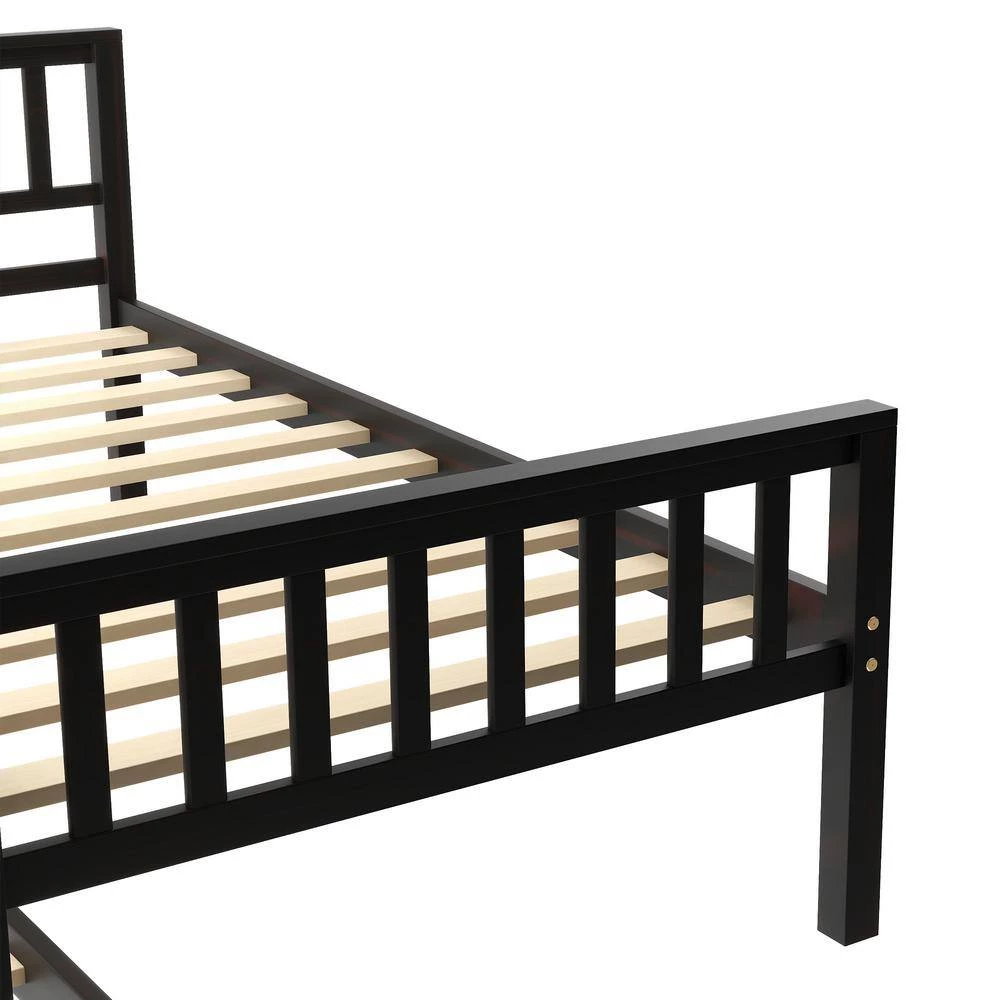 - [Safety and Quality Guaranteed]This bed is crafted from premium pine wood, providing lasting sturdiness and durability. The bed is constructed with firmly secured slatted headboard and footboard, forging strong stability that that ensures supremely comfortable and supportive experience when user is sleeping restfully.